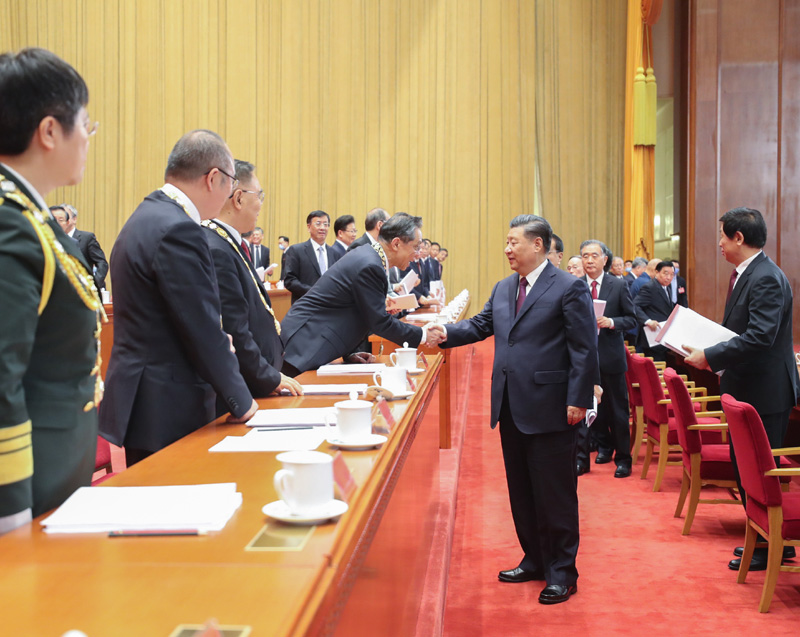 習(xí)近平等為受表彰的個(gè)人和集體代表頒獎(jiǎng)。